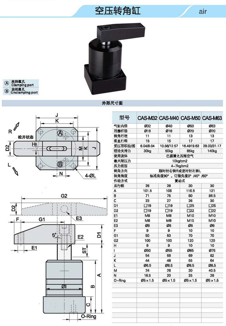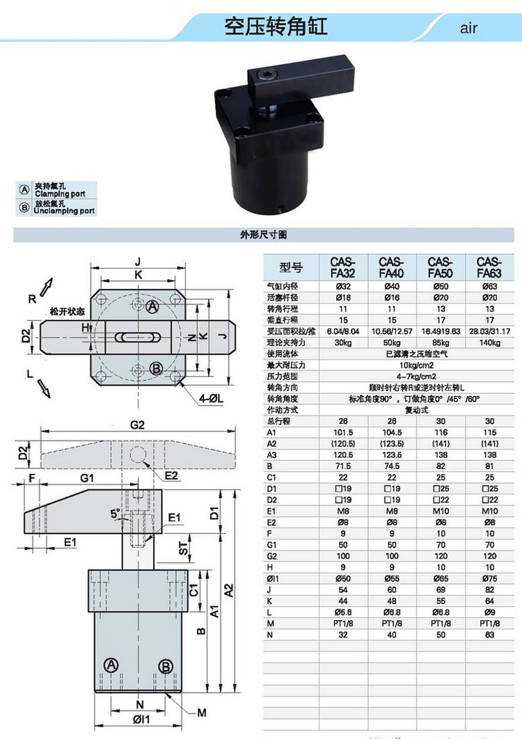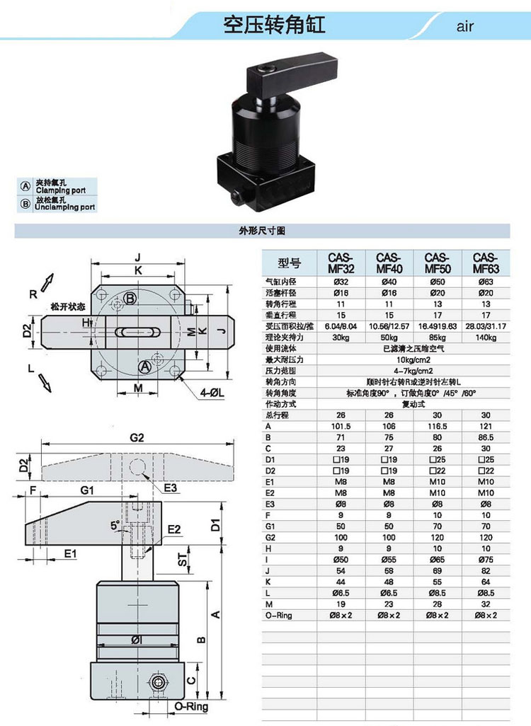 CAS,CAS-MF,CAS-M,CAS-FA,CAS-TB,CAS-25,CAS-M40,CAS-TB63,CAS-FA32,空壓轉(zhuǎn)角缸