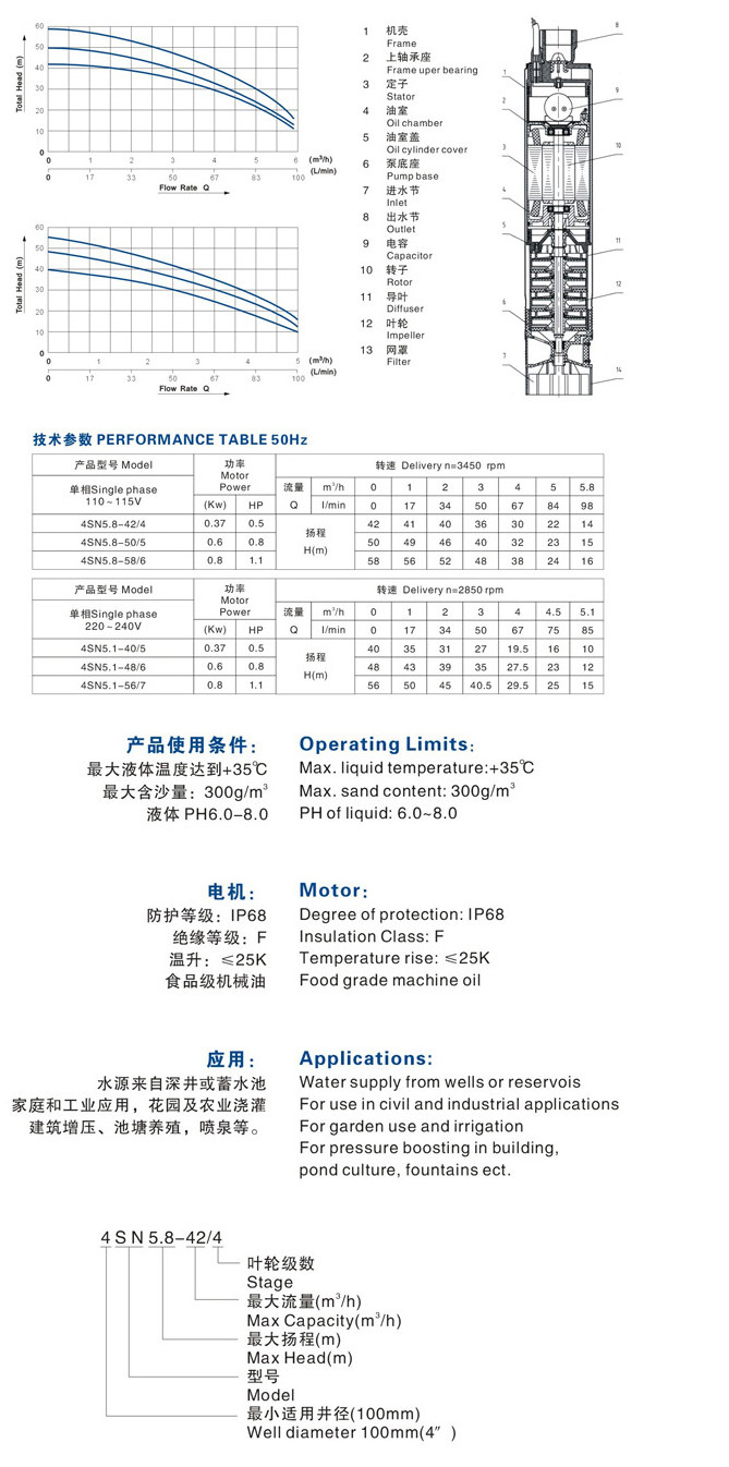 4SN5.8-42/4,4SN5.8-50/5,4SN5.8-58/6,4SN5.1-40/5,4SN5.1-48/6,4SN5.1-56/7