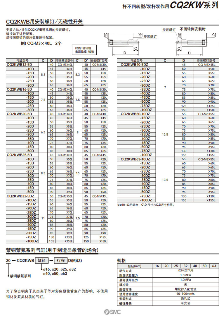 CDQ2KWG63-75D,CDQ2KWG63-100D,CDQ2KWG50-75D,CDQ2KWG50-100D,CDQ2KWG40-75D,CDQ2KWG40-100D,CDQ2KWD12-5D,CDQ2KWD12-10D,