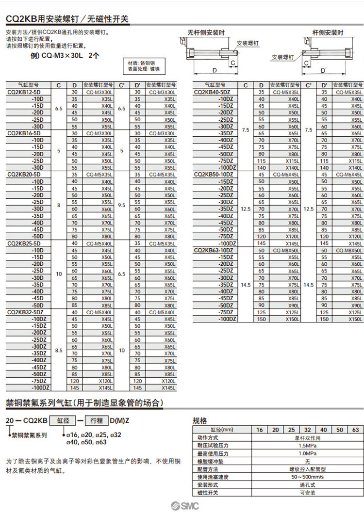 CDQ2KG63-75,CDQ2KG63-100,CDQ2KG50-75,CDQ2KG50-100,CDQ2KG40-75,CDQ2KG40-100,CDQ2KD12-5,CDQ2KD12-10,