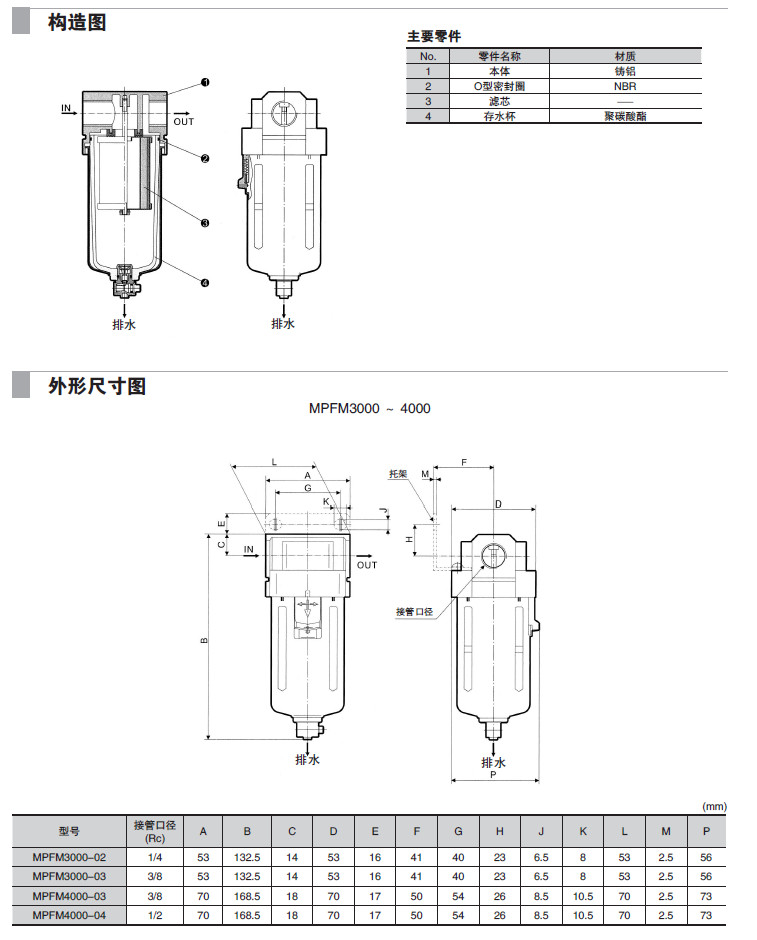 MPFM3000-02,MPFM3000-03,MPFM3000-04,MPFM4000-02,MPFM4000-03,MPFM4000-04,油霧分離器