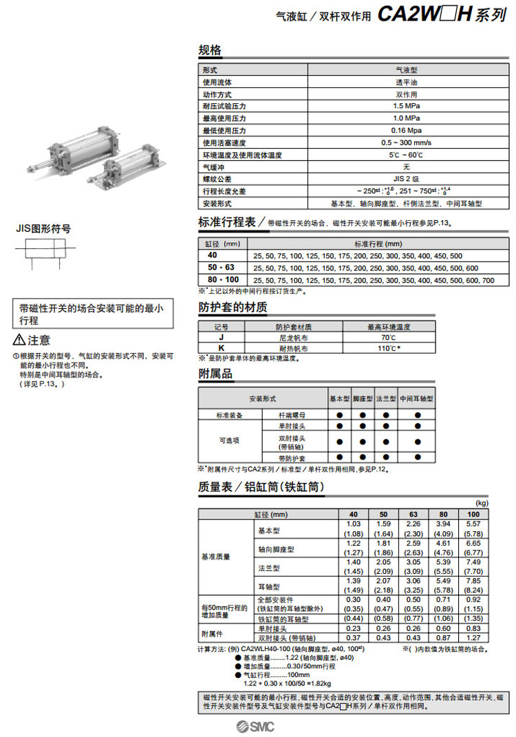 CA2WGH50-300,CA2WGH63-300,CA2WGH80-300,CA2WGH100-300,CA2WBH40-350,CA2WBH50-350,CA2WBH63-350,CA2WBH80-350,