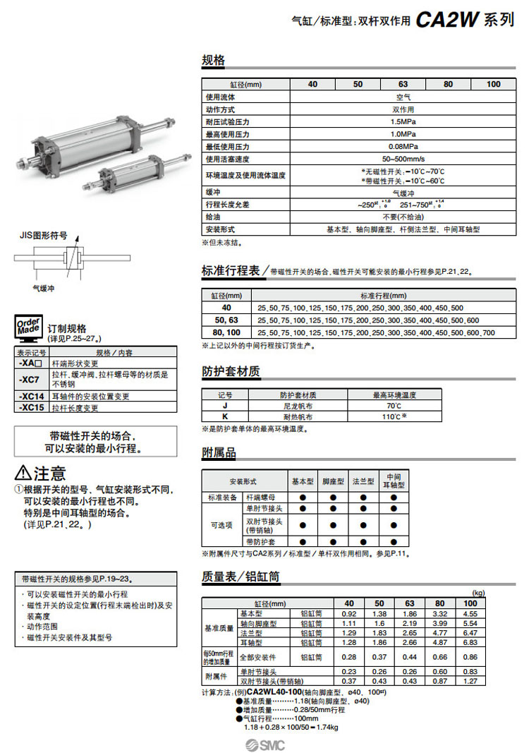 CA2WB50-300,CA2WB50-350,CA2WB63-300,CA2WB63-350,CA2WB63-400,CA2WB63-450,CA2WB63-500,CA2WB63-600,
