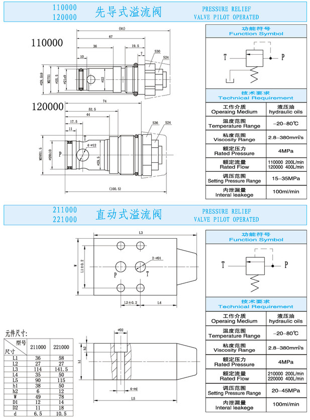 110000,120000,211000,221000,先導式溢流閥