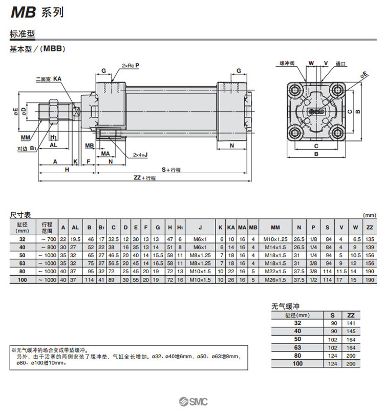 MBT100-150Z,MBT100-175Z,MBT100-200Z,MBT100-250Z,MBT100-300Z,MBT100-350Z,MBT100-400Z,MBT100-450Z,SMC單桿型氣缸