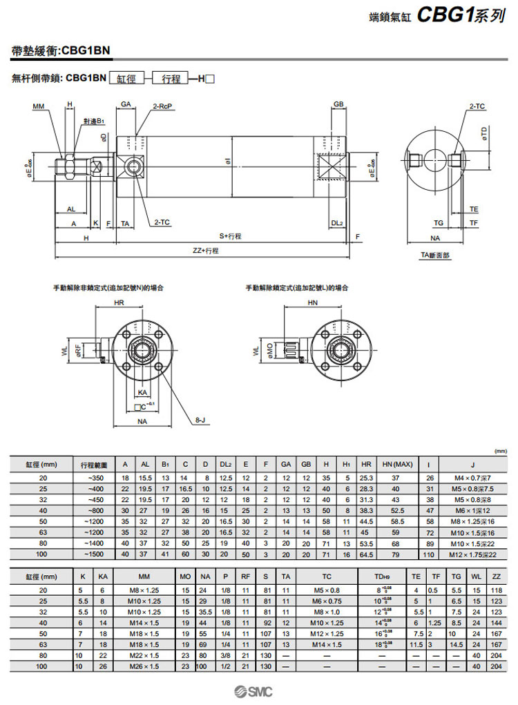 CBG1BQ63-300,CBG1LQ63-300,CBG1FQ63-300,CBG1GQ63-300,CBG1UQ63-300,SMC端鎖氣缸