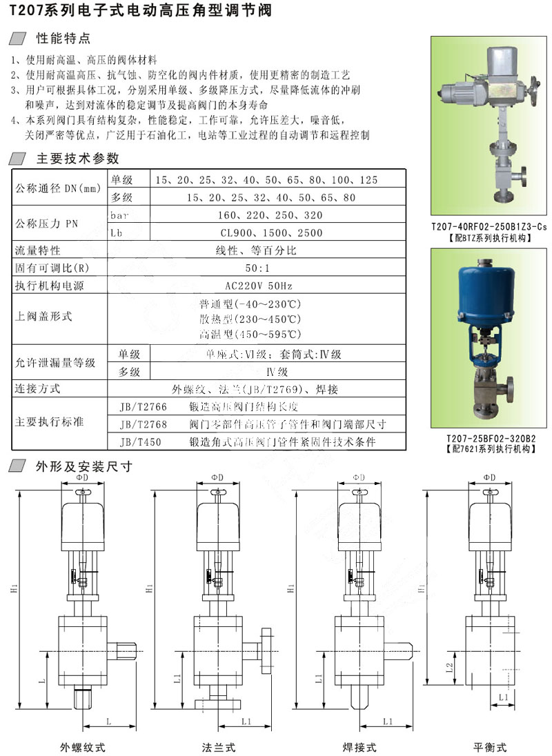 T207-160B,T207-220B,T207-250B,T207-320B-DN50,電子式電動(dòng)高壓角型調(diào)節(jié)閥