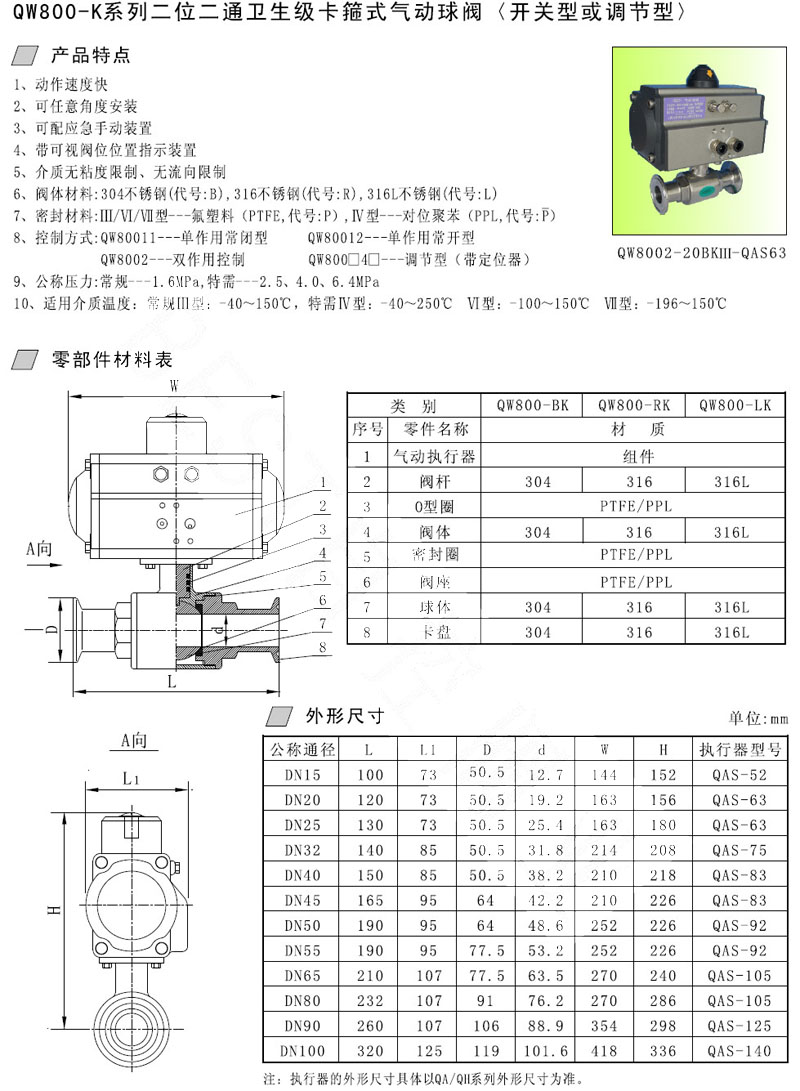 QW800-BK-DN15,QW800-RK-DN20,QW800-LK-DN32,氣動(dòng)球閥