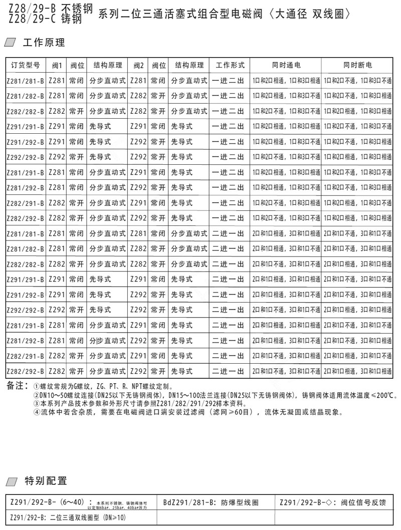 Z281/281-B,Z282/282-B,Z291/291-B,Z281/292-B,Z292/292-B,二位三通電磁閥 |