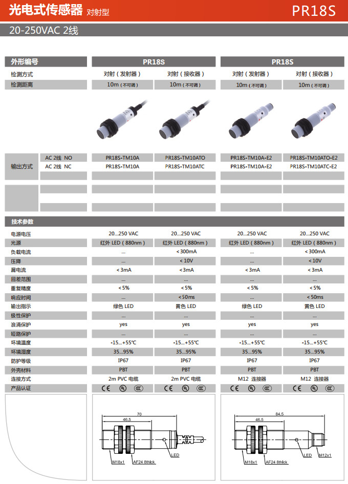 PR18S-TM10A,PR18S-TM10ATO,PR18S-TM10ATC,PR18S-TM10A-E2,PR18S-TM10ATO-E2,PR18S-TM10ATC-E2,光電式傳感器 |