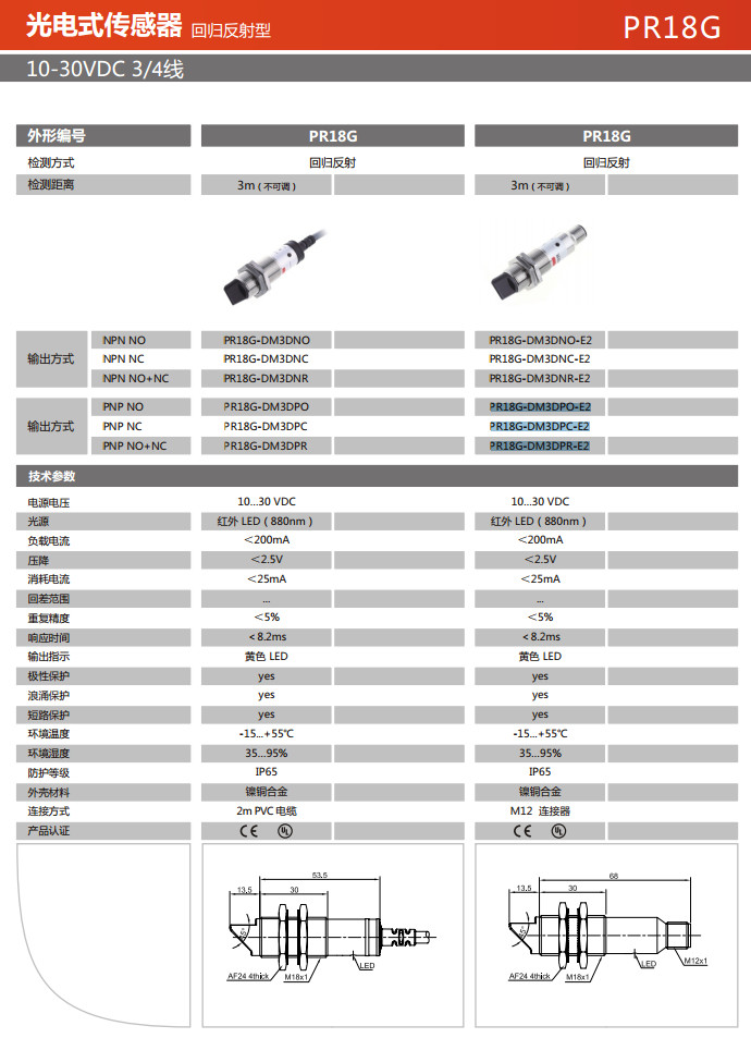 PR18G-DM3DNO,PR18G-DM3DNC,PR18G-DM3DNR,PR18G-DM3DPO,PR18G-DM3DPC,PR18G-DM3DPR,光電式傳感器
