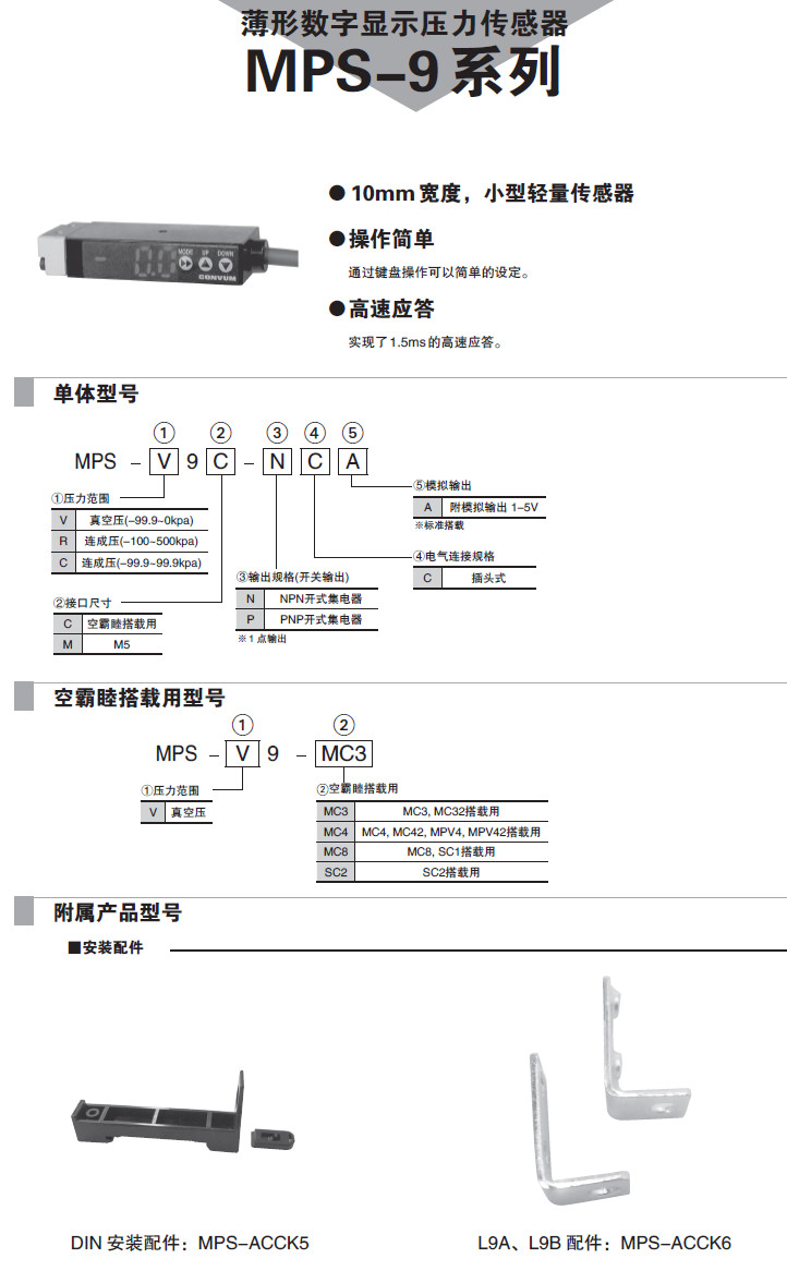 MPS-V9C-NCA,MPS-R9C-NCA,MPS-C9C-NCA,MPS-V9M-NCA,MPS-R9M-NCA,MPS-C9M-NCA,壓力傳感器 |