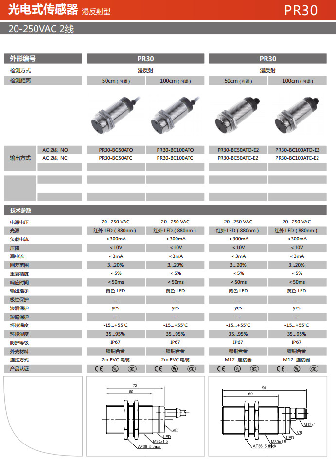 PR30-BC50ATO,PR30-BC50ATC,PR30-BC100ATO,PR30-BC100ATC,PR30-BC50ATO-E2,PR30-BC50ATC-E2,PR30-BC100ATO-E2,PR30-BC100ATC-E2,光電式傳感器