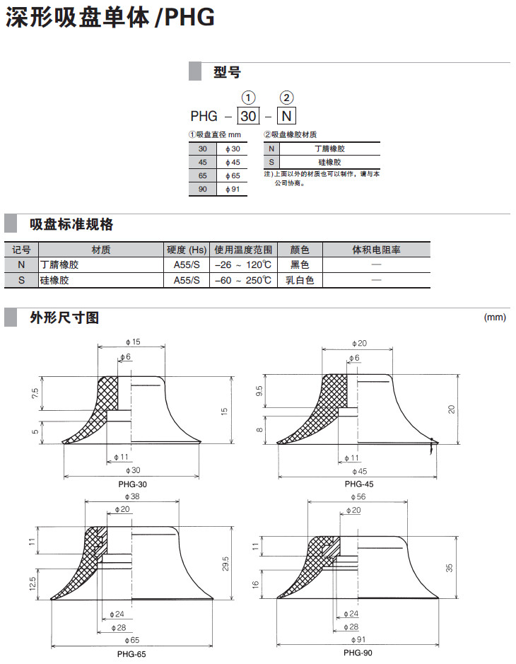 PHG-30-N,PHG-45-N,PHG-65-N,PHG-90-N,PHG-30-S,PHG-45-S,PHG-65-S,PHG-90-S,吸盤