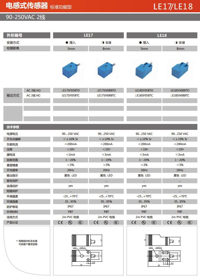 LE17SF05BTO,LE17SF05BTC,LE17SN08BTO,LE17SN08BTC,LE18SF05BTO,LE18SF05BTC,LE18SN08BTO,LE18SN08BTC,電感式傳感器