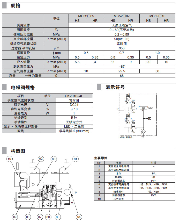MC52-M-05-H-S-V8-S-4,MC52-M-07-H-S-V8-S-4,MC52-M-10-H-S-V8-S-4,真空發(fā)生器組合