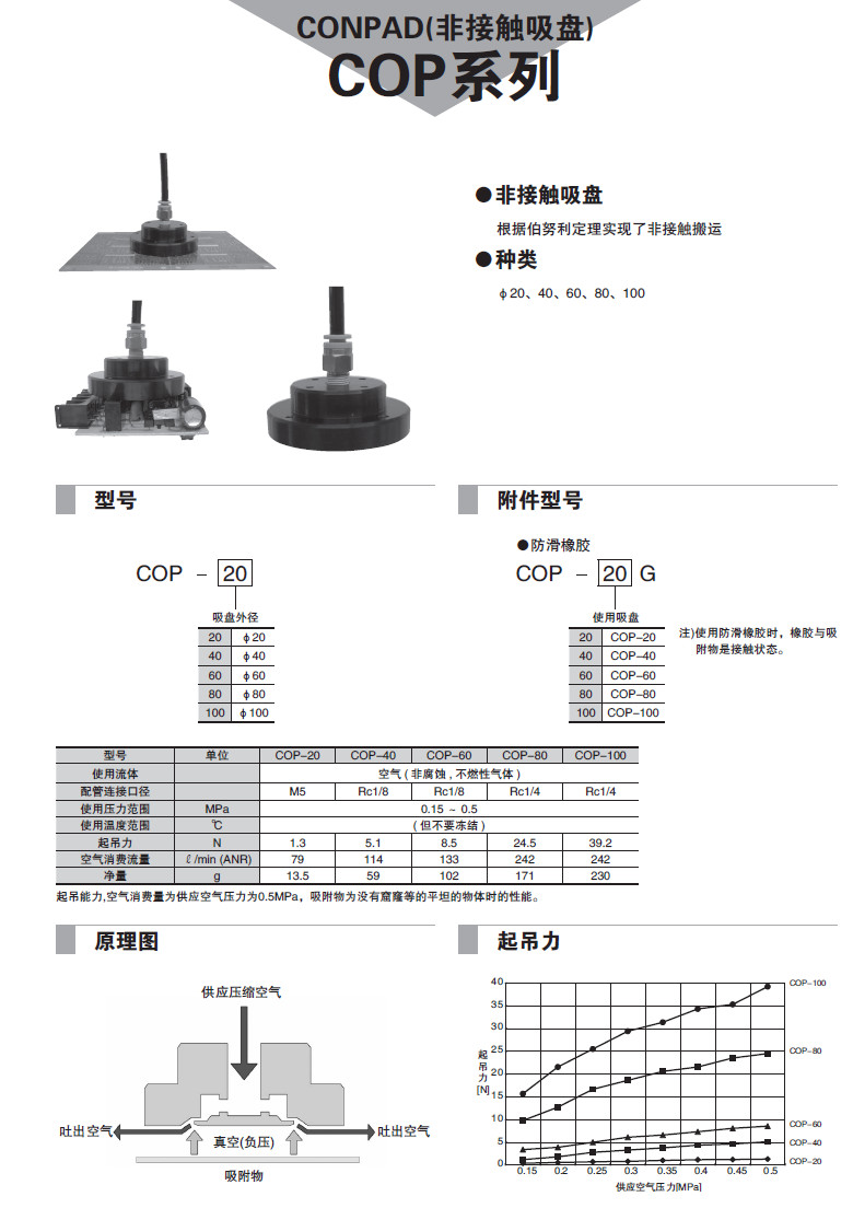 COP-20,COP-40,COP-60,COP-80,COP-100,非接觸吸盤(pán)