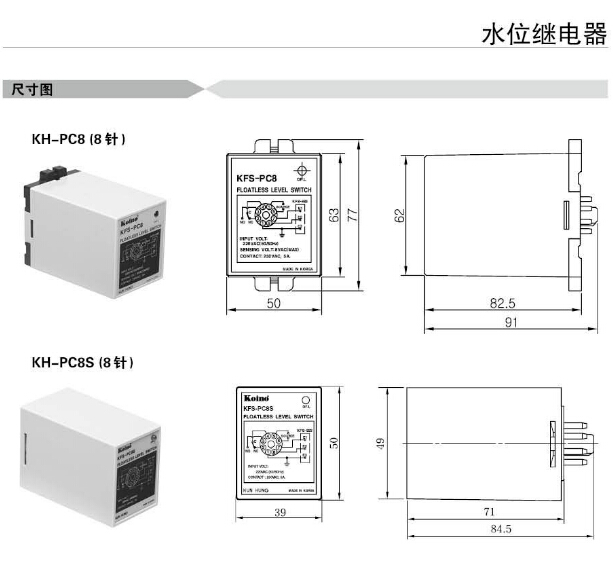 KFS-PC8,KFS-PC8S,Koino水位繼電器