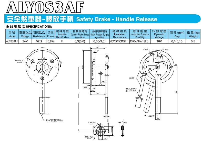 ALY0S3AF,安全剎車器附釋放手柄