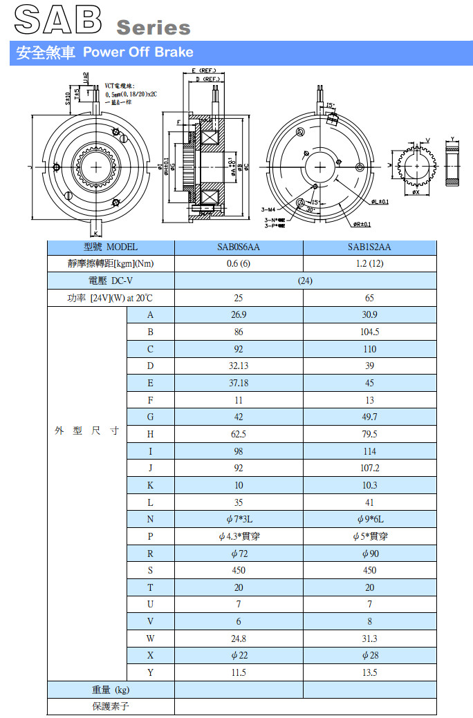 SAB0S6AA,SAB1S2AA,安全剎車器