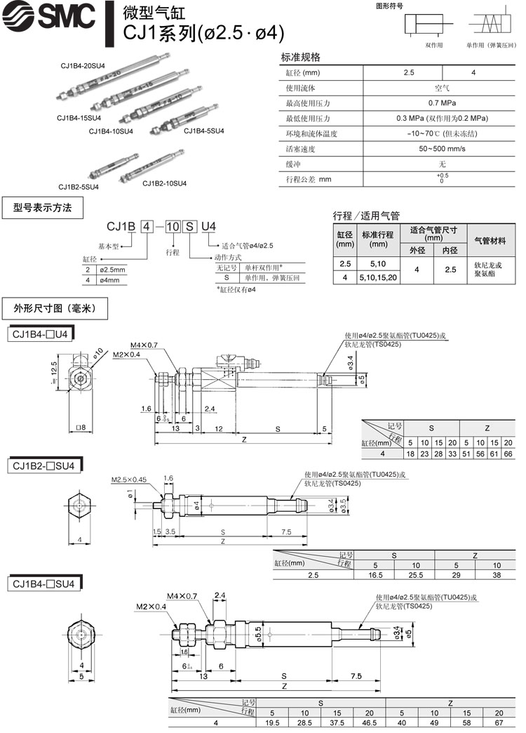 CJ1B4-5SU4,CJ1B4-10SU4,CJ1B4-15SU4,CJ1B4-20SU4,CJ1B2-5SU4,CJ1B2-10SU4,SMC微型氣缸