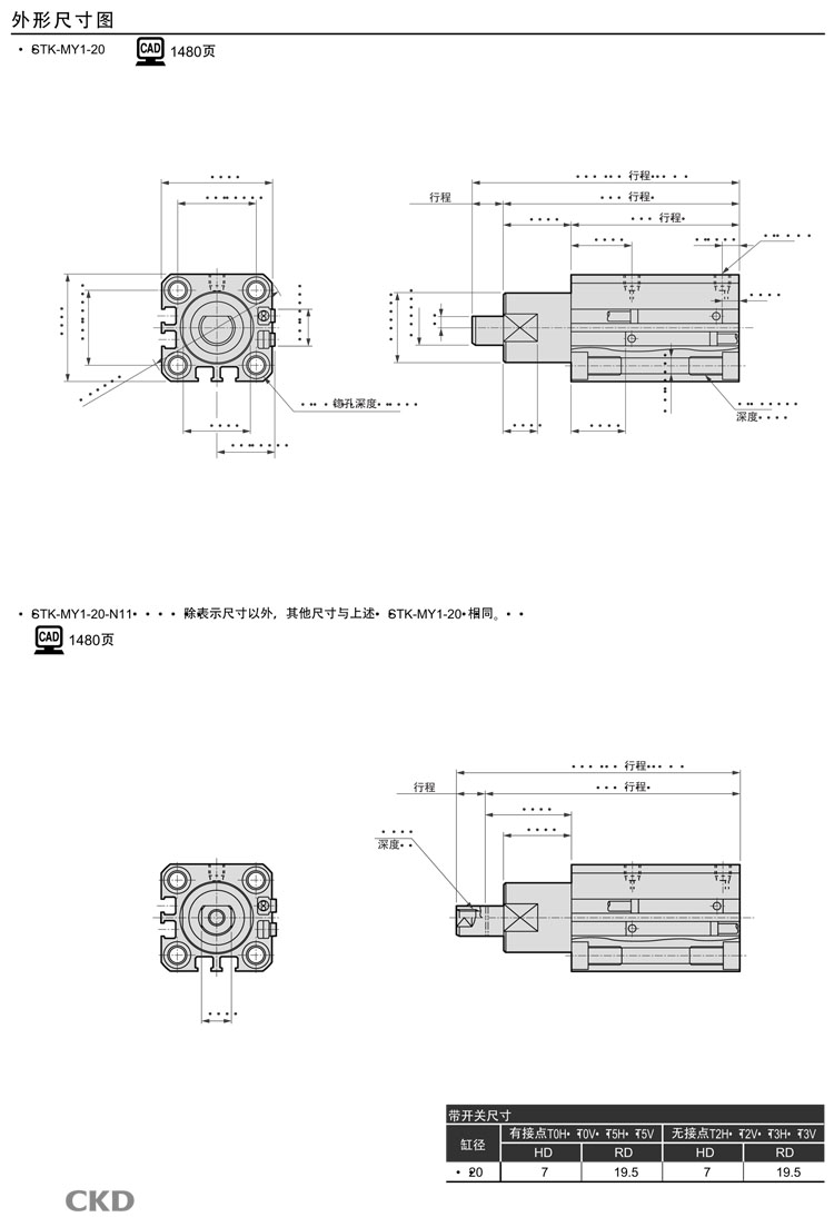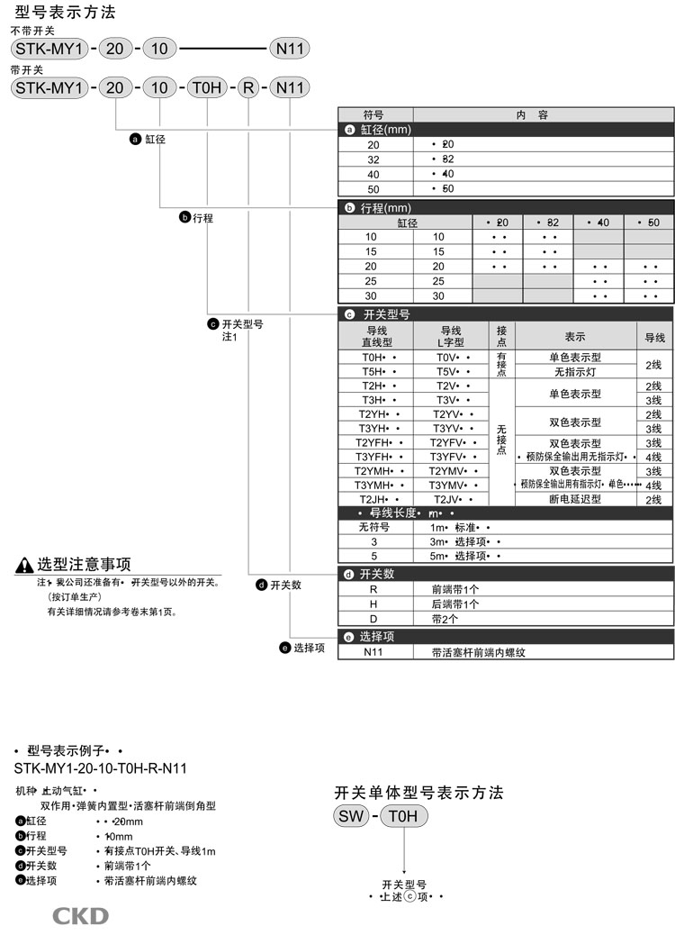 STK-MY1-20-10,STK-MY1-32-10,STK-MY1-40-20,STK-MY1-50-20,STK-MY1-20-15,STK-MY1-40-25,CKD止動氣缸