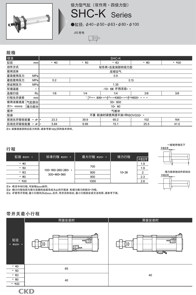 SHC-K-LB,SHC-K-FA,SHC-K-TA,SHC-K-L2-LB,SHC-K-L2-FA,SHC-K-L2-TA,CKD倍力型緊氣缸