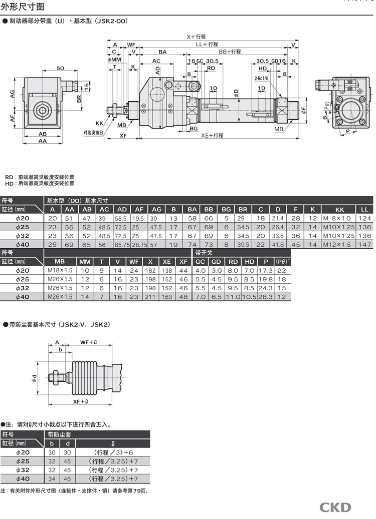 JSK2-V-TB-40-25,JSK2-V-TB-40-50,JSK2-V-TB-40-75,JSK2-V-TB-40-100,JSK2-V-TB-40-125,JSK2-V-TB-40-150,CKD制動氣缸