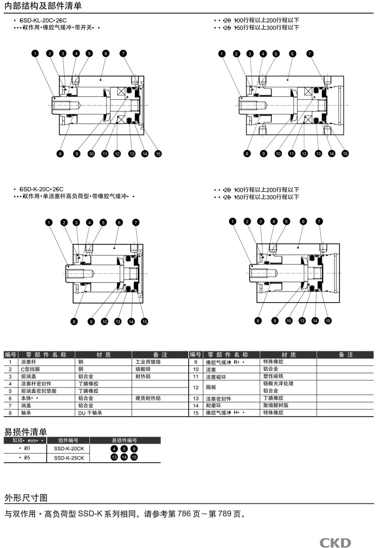 SSD-KL-20,SSD-KL-25,SSD-KL-32,SSD-KL-40,SSD-KL-50,SSD-KL-63,SSD-KL-80,SSD-KL-100,CKD超緊湊型氣缸