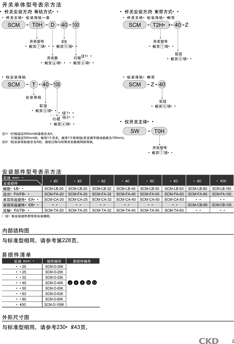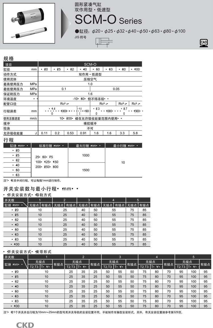 SCM-O-00,SCM-O-LB,SCM-O-FA,SCM-O-FB,SCM-O-CA,SCM-O-CB,SCM-O-TA,SCM-O-TB,SCM-O-00-20D-200,CKD圓形緊湊氣缸
