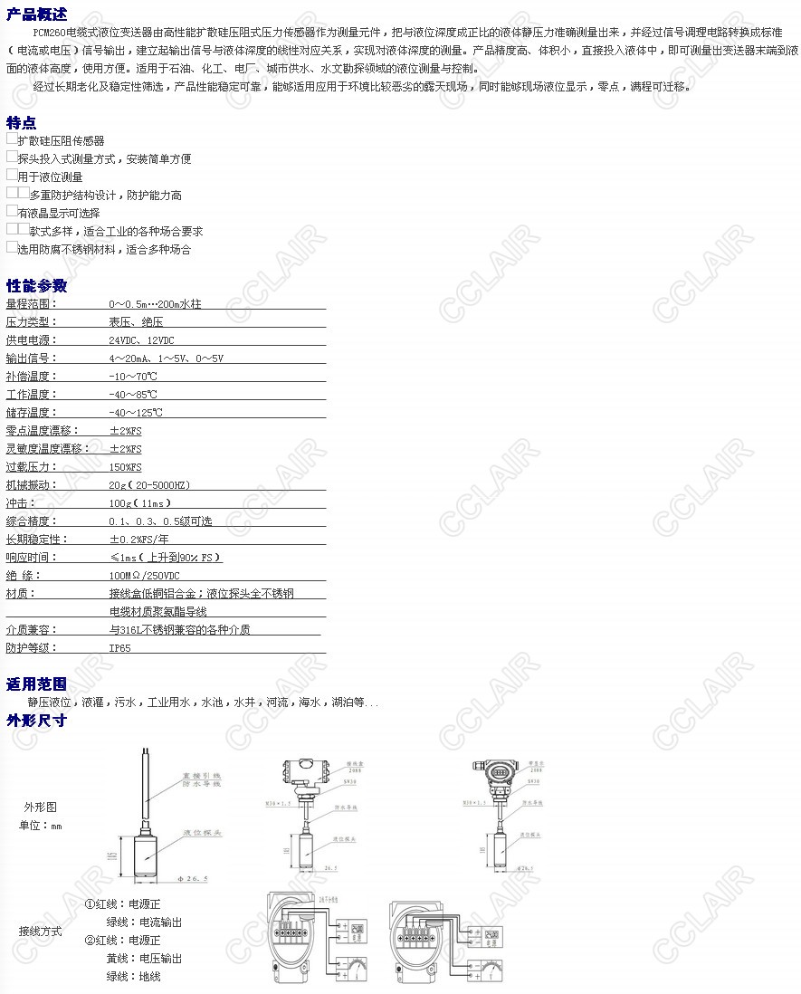 PCM260,電纜式液位變
