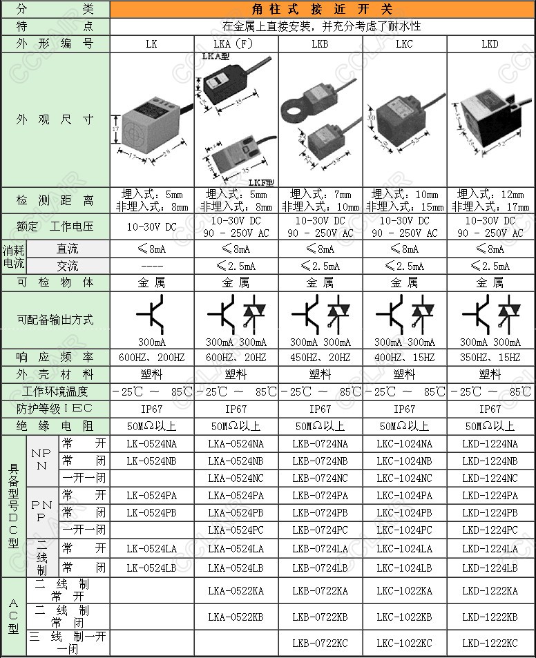 LK-0524NA,LKA-0524NA,LKB-0724NA,LKC-1024NA,LKD-1224NA,LK-0524NB,LKA-0524NB,角柱式接近開關(guān)