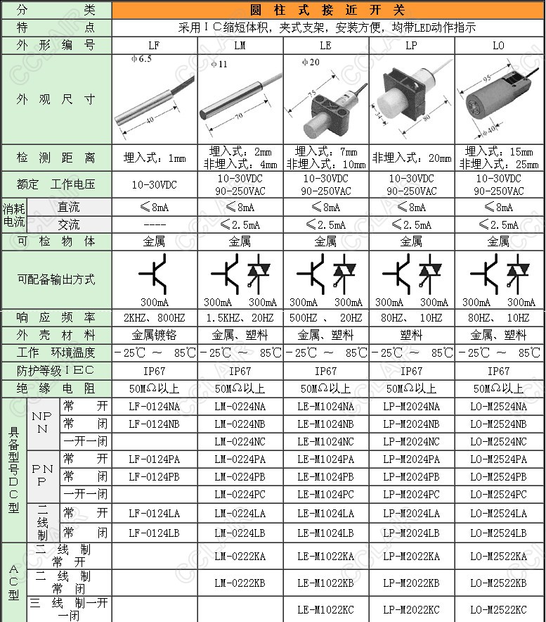 LF-0124NA,LM-0224NA,LE-M1024NA,LP-M2024NA,LO-M2524NA,LF-0124NB,LM-0224NB,LE-M1024NB,圓柱式接近開關(guān) |