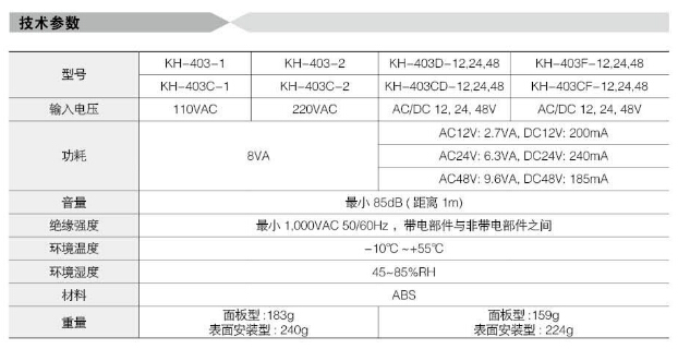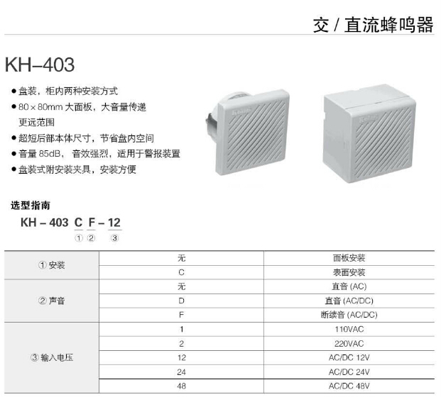 KH-403-1,KH-403C-1,KH-403D-12,KH-403CD-12,KH-403F-12,KH-403CF-12,KH-403CF-48,Koino交/直流蜂鳴器 |