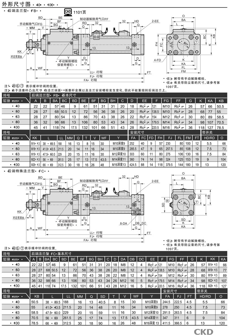 JSC3-H-00-40B,JSC3-SH-00-40B,JSC3-L2H-00-40B,JSC3-SL2H-00-40B,CKD制動氣缸