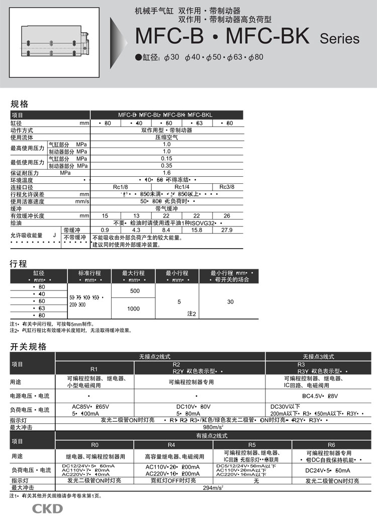 MFC-B-00-30B-50,MFC-BL-00-30B-50,MFC-BK-00-30B-50,MFC-BKL-00-30B-50,CKD機械手氣缸