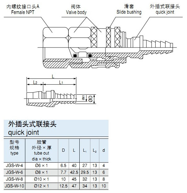 JGS-W-4,JGS-W-6,JGS-W-8,JGS-W-10,外插頭式聯(lián)接頭