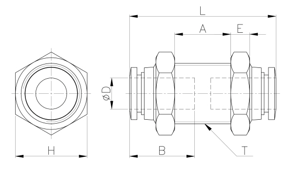 | Model | ∅D | T | L | E | A | B | H(Hex) | ORIFICE | WEIGHT(g) | BOX(EA) |