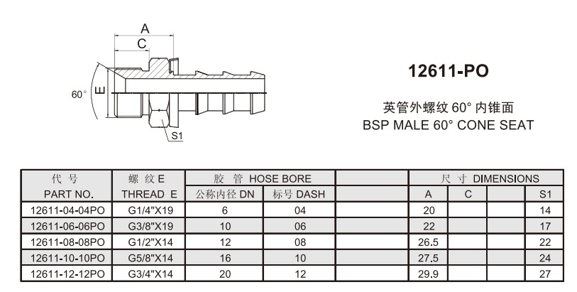 12611-04-04PO,12611-06-06PO,12611-08-08PO,12611-10-10PO,12611-12-12PO,插入式軟管接頭