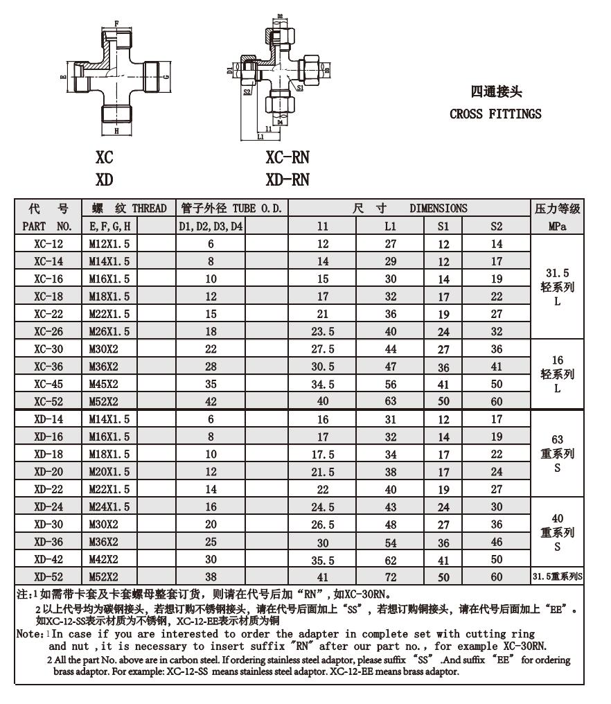 XC-12,XC-26,XC-30,XC-36,XC-45,XC-52,XD-18,XD-20,XD-36,XD-42,XD-52,四通接頭