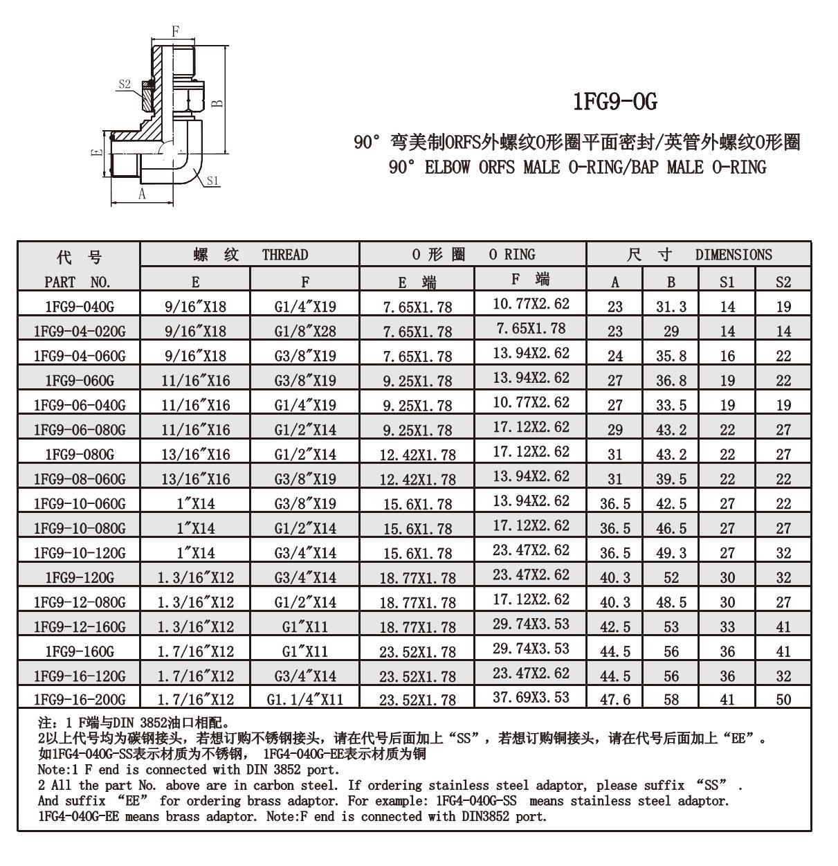 1FG9-040G,1FG9-060G,1FG9-080G,1FG9-120G,1FG9-160G,美螺紋O形圈密封接頭