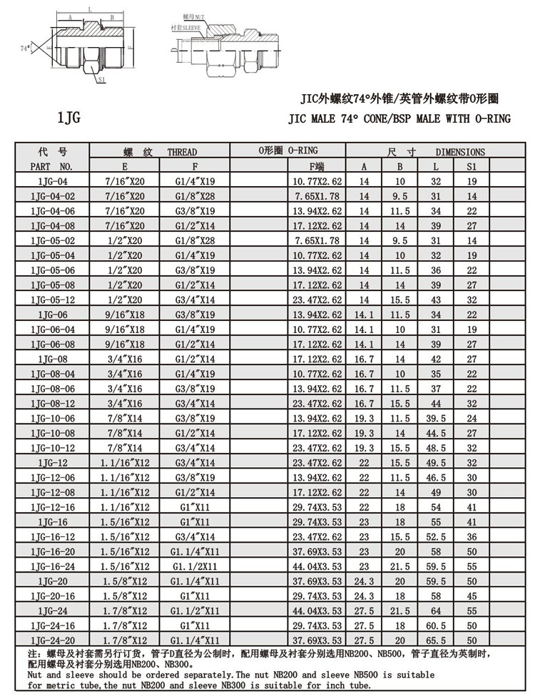 型號: 1JG-04,1JG-06,1JG-08,1JG-10,1JG-12,1JG-16,1JG-20,1JG-24,