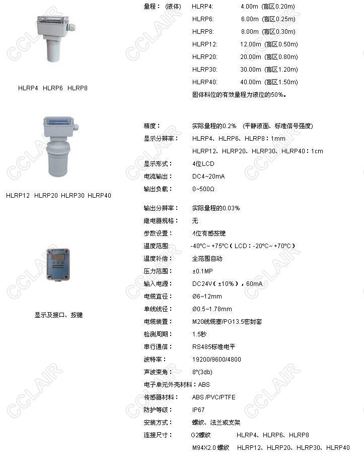 HLRP4,HLRP6,HLRP8,HLRP12,HLRP20,HLRP30,HLRP40,HLRP一體式超聲波物位計