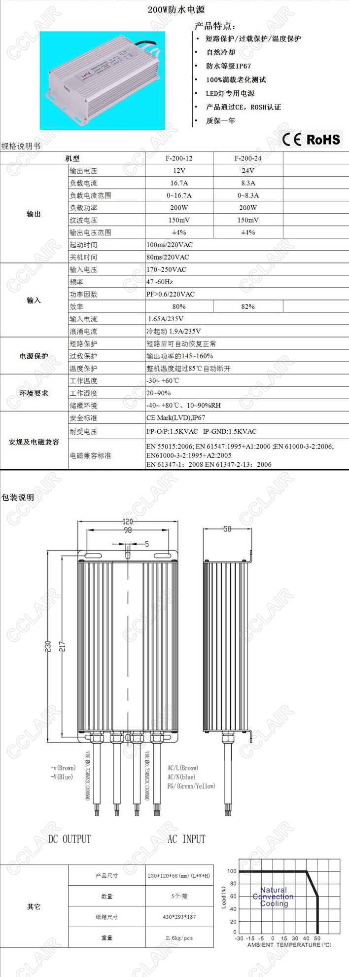 F-200-12,F-200-24,F-200,鋁殼防水電源