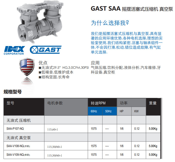SAA-P107-NQ,SAA-V108-NQ,SAA-V109-NQ,搖擺活塞式壓縮機(jī)/真空泵