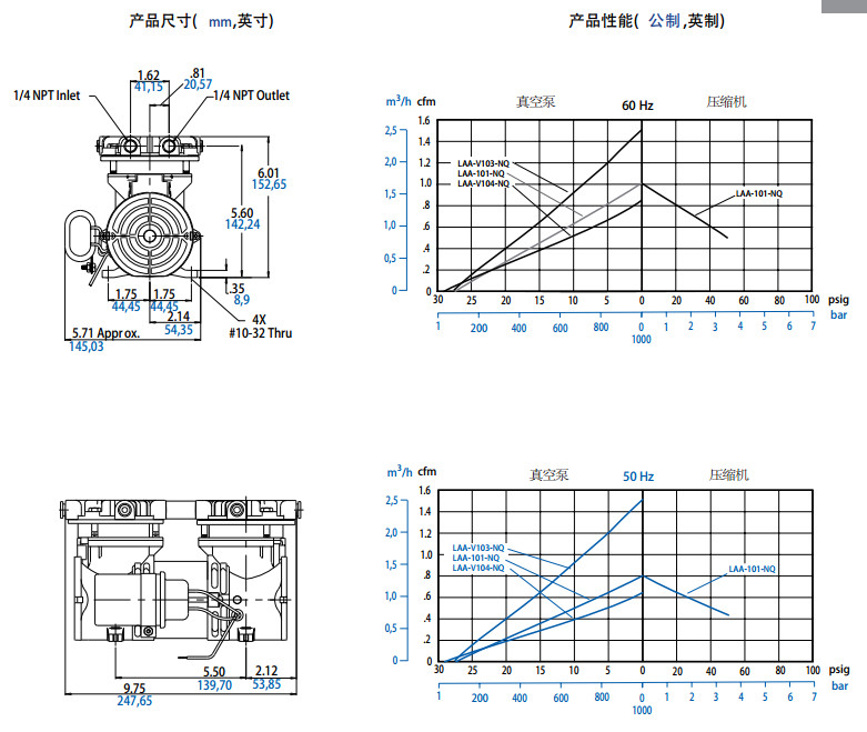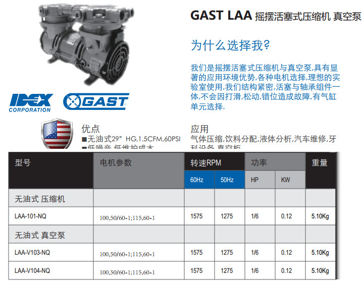 LAA-101-NQ,LAA-V103-NQ,LAA-V104-NQ,搖擺活塞式壓縮機(jī)/真空泵
