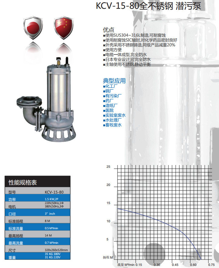 KCV-15-80,全不銹鋼潛污泵