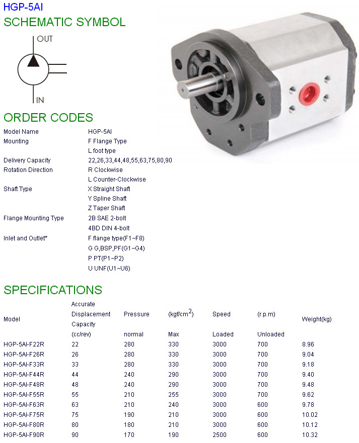 HGP-5AI-F22R,HGP-5AI-F26R,HGP-5AI-F33R,HGP-5AI-F44R,HGP-5AI-F48R,HYDROMAX齒輪泵