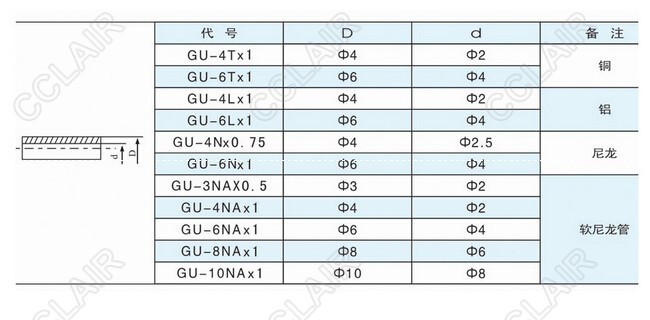 GU-4T*1,GU-6T*1,GU-4L*1,GU-6L*1,GU-4N*0.75,GU-6N*1,GU-3NA*0.5,GU-4NA*1,油管