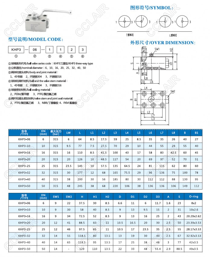 KHP3-06,KHP3-10,KHP3-16,KHP3-20,KHP3-25,KHP3-32,KH3-40,KHP3-50,KHP3,板式三通球閥 |
